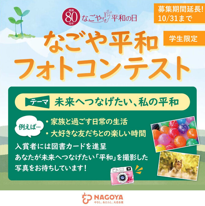【募集期間延長!10月31日締切】なごや平和フォトコンテスト 作品募集中!