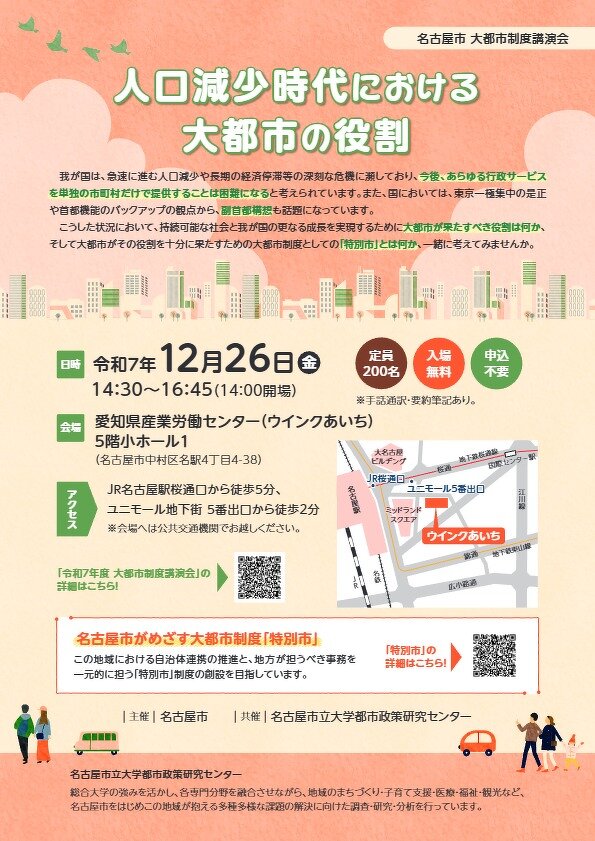 副首都構想も話題となる中、人口減少社会における大都市の役割や大都市制度のあり方について、市長やボイメンとともに考えてみませんか。