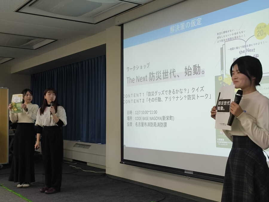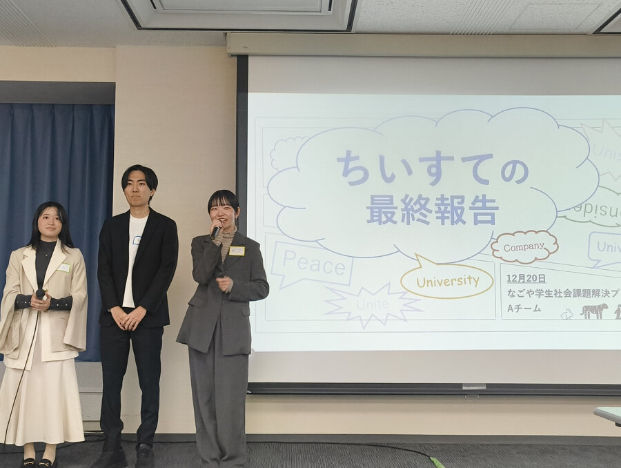 令和7年12月20日(土)に、明治安田生命名古屋ビルにて、「なごや学生社会課題解決プログラム」の成果報告会を行いました。