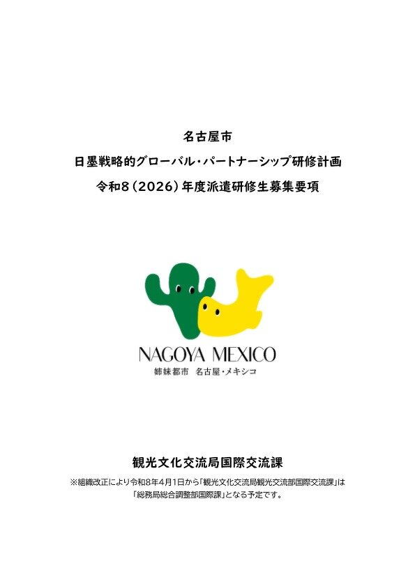 名古屋市「日墨戦略的グローバル・パートナーシップ研修計画」派遣研修生募集!!