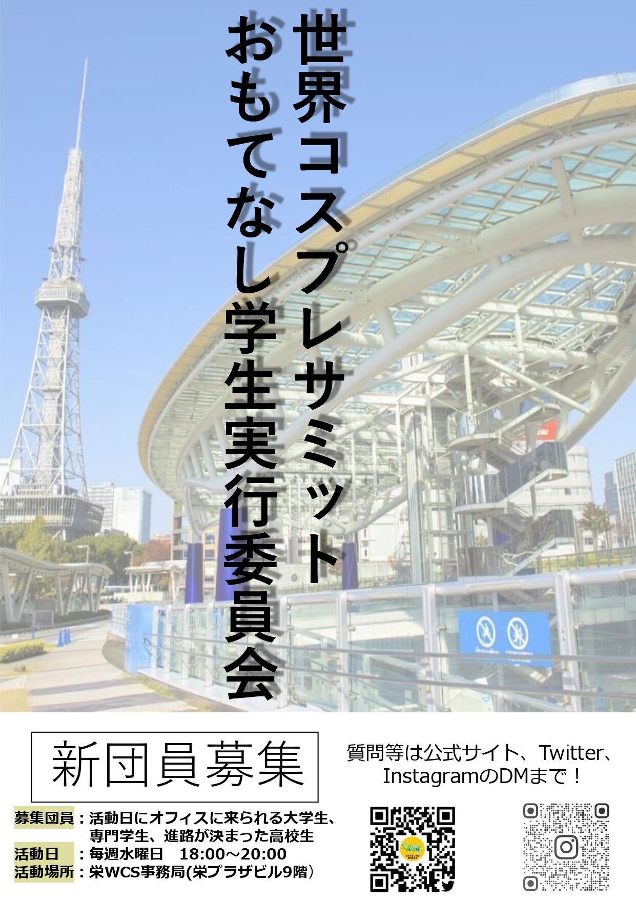 毎年名古屋・栄で開催される『World Cosplay Summit 世界コスプレサミット (通称WCS, コスサミ)』で世界各国・地域の代表コスプレイヤーたちをおもてなしする学生ボランティア大募集!