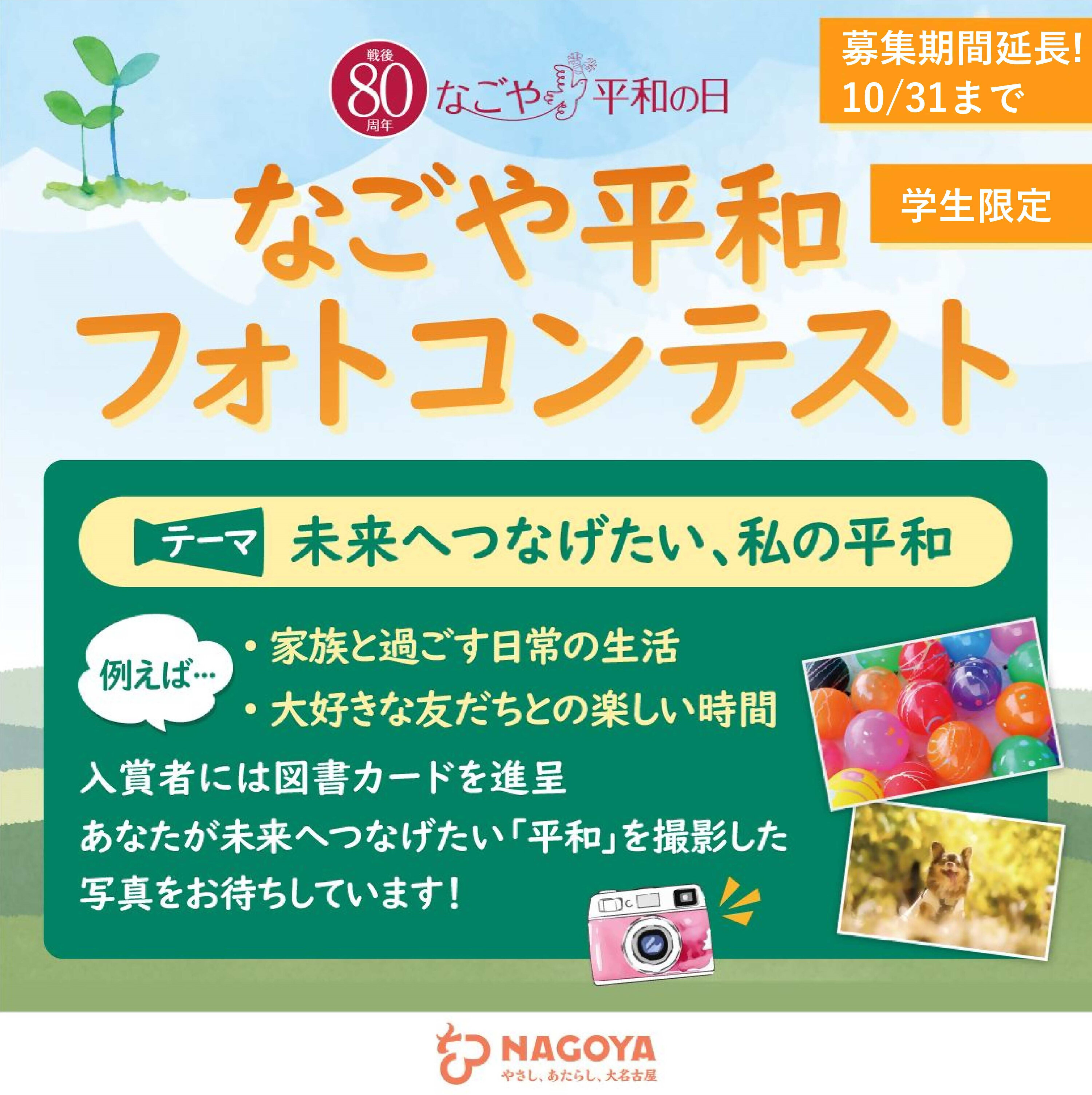 「未来につなげたい、私の平和」を テーマに、なごや平和フォトコンテストを開催中!