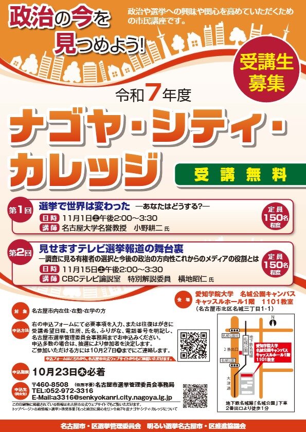 政治や選挙への興味や関心を高めていただくための市民講座です。