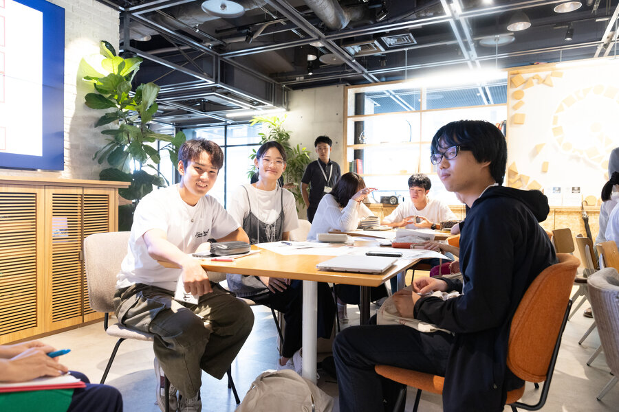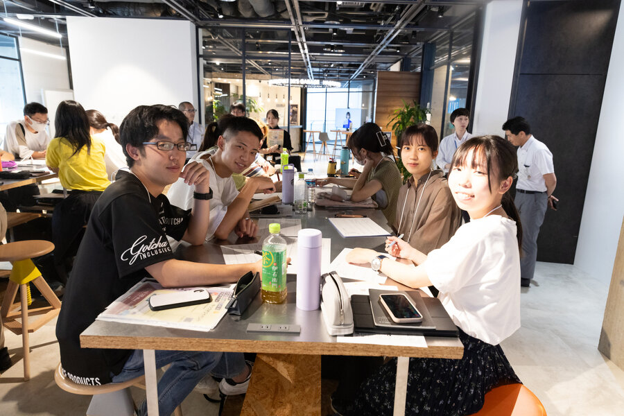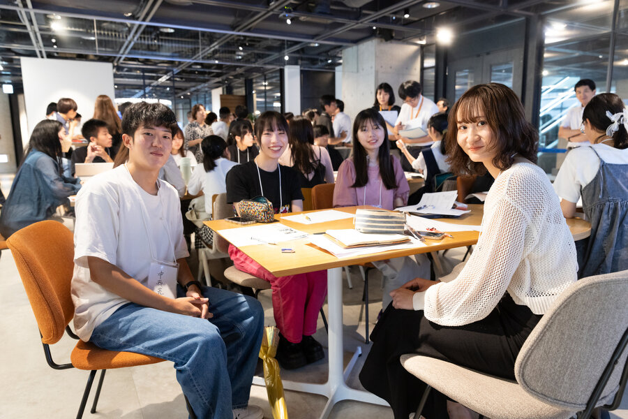 第1部では、特技は「雰囲気づくり」の原コーディネーターにバトンタッチして、前回のふりかえりのあと、アイデアスケッチの共有を行いました。前回の8/8プレキックオフイベントでは、このプログラムに参加した学生40名ONE TEAMで4つの課題の中のどの課題に取り組むかを学生自ら選んでいただきました。今日は各自課題を深掘りして作ってきたアイデアスケッチを見せながら、課題に対する思いや解決策のアイデアを語ってくださいと説明がありました。2名ずつのペアに別れて、各自が考えてきたアイデアスケッチの共有を行いました。
