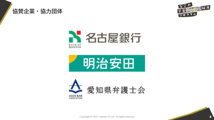 最後に、協賛・協力企業である株式会社名古屋銀行様、明治安田生命保険相互会社様、愛知県弁護士会様より総括コメントをいただきました。