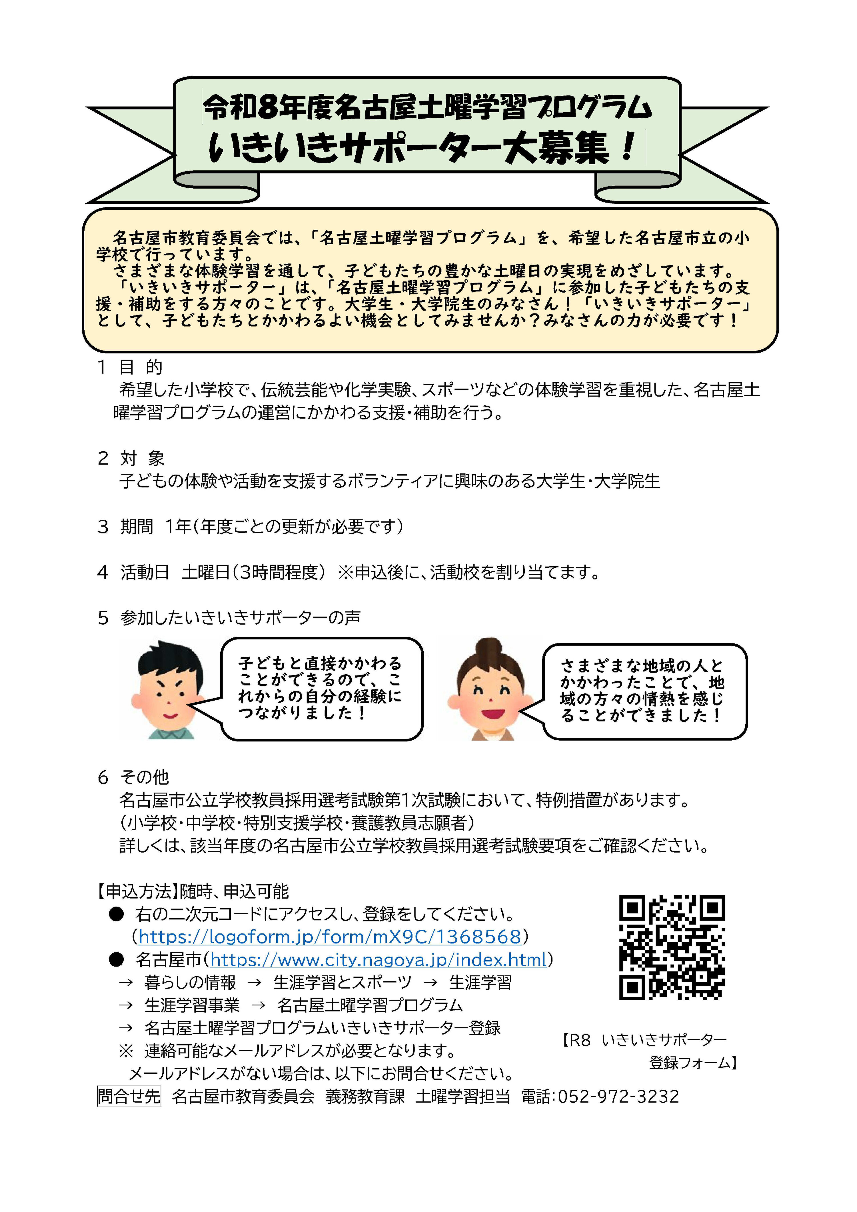 名古屋土曜学習プログラム(いきいきサポーターの募集)