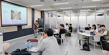 プレゼンテーションやグループワーク、設計講評にに使用できる多目的なオープンスペース
