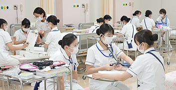 各種看護領域に応じた実習室はキレイで開放的な雰囲気!最新のモデル人形や教材も充実。