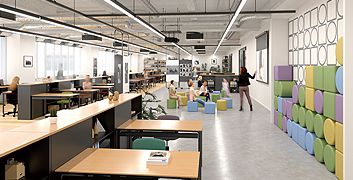 ラーニングコモンズは、自主学習、グループ討論など、自由に使えるスペースです。