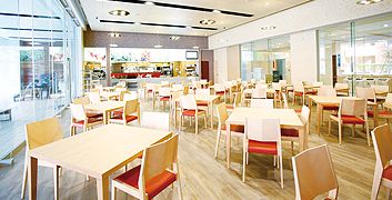 広い空間でゆったりと食事が楽しめるレストラン。バスタやカレーライスが人気です。