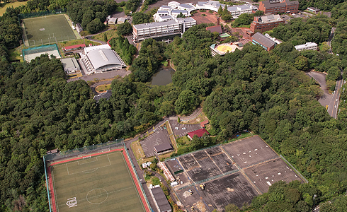広大な敷地には、人工芝のラグビー場やサッカー場、野球場や室内プールなどの大学専用グラウンドやトレーニング施設が設置されています。キャンパスへは最寄りの駅から無料スクールバスが運行しているほか、学生専用の駐車場と駐輪場も整備されています。