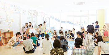 学内にある地域の子育て支援施設。日常的に子どもや保護者の方と触れ合うことができます。