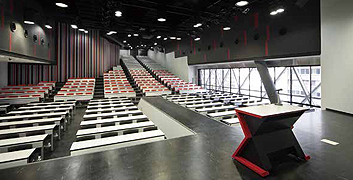 各界のスペシャリストを招く特別講義や、プレゼン、学内イベントなどに使用するホール。