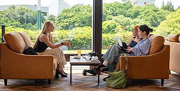 美味しいランチや、コーヒーを片手に気軽にくつろげるスペース。留学生との交流の場としても活用できます。
