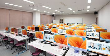メディア棟には、スタジオやメディアラボなど多彩なコンピュータで情報処理技術を学び施設・設備が集結。