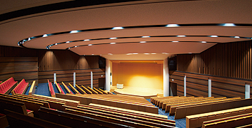 梅村学園の初代理事長・梅村清明の名がつけられた学術ホール。約500名を収容でき、講演会などに使用されます。