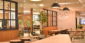 1階では管理栄養士が監修した「アスリート定食」、2階では焼きたてパンやカフェが提供する食事を用意しています。