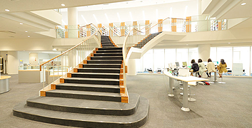 5階吹き抜けで開放感いっぱいのスペース。友人とのランチや読書など、自由に過ごせる場所です。
