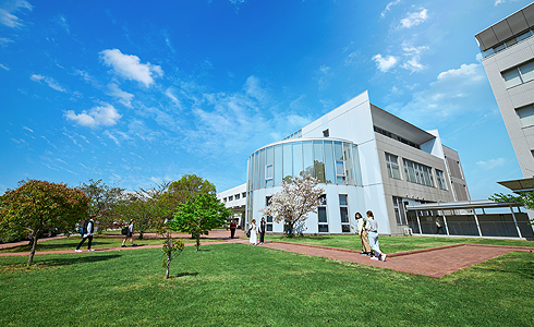 豊橋市の郊外に広大な敷地の中にあるキャンパスです。近くには川も流れ、自然豊かな静かな環境の中で学ぶことができます。