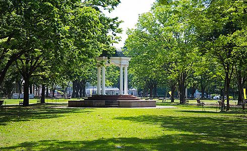 小豆島の由緒ある寺院の庫裏を移した「洞雲亭」など、キャンパスの一角に美しい庭園があります。