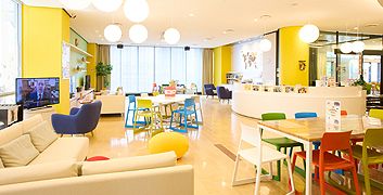 2023年に完成した8階建てのスタイリッシュな建物で多目的ホールや屋外テラスも完備。