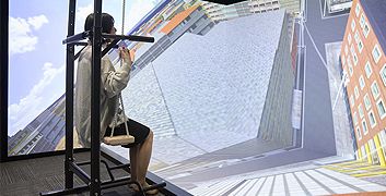 側面、床面の大型スクリーンに映像を投影することで、バーチャル・リアリティ空間が広がります。