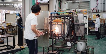 東海地方の私立大学で唯一のガラス工房。吹きガラス溶解炉やガラス鋳造用電気炉、大型電気炉が設置されています。