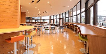 飲食のできるラーニングスペースです。昼食だけでなくミーティングや個人学習の場として、いつでも利用可能です。