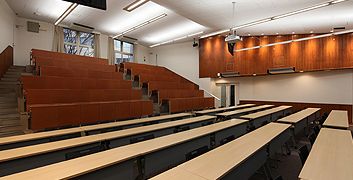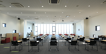 本学で一番大きな教室です。同じ大きさが3部屋あり、講義形式の授業で活用されます。